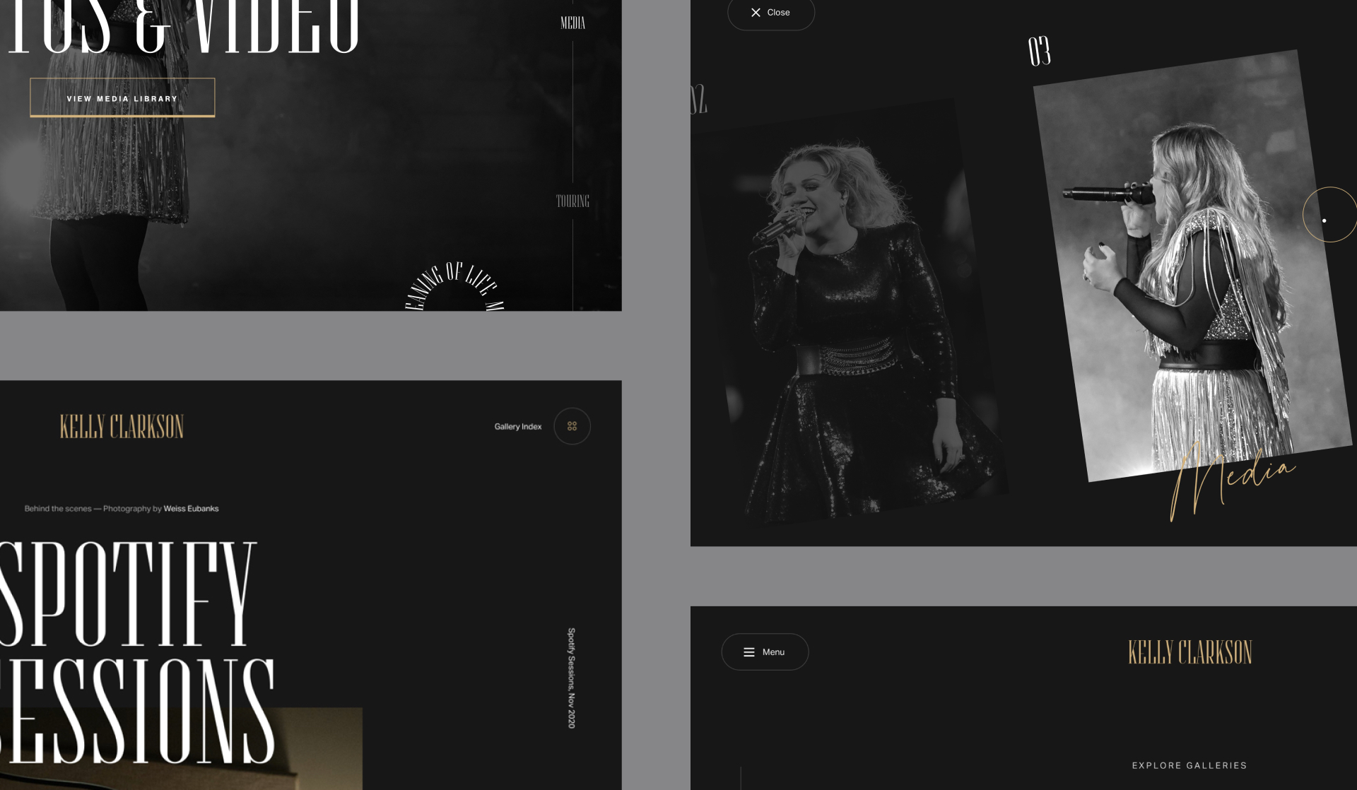 For the two Kelly Clarkson website projects we worked on, we began by curating mood boards and hosting creative sessions, exploring multiple design directions to find the best visual styles and layouts. Our design and development teams worked together seamlessly to ensure that the final designs were aligned with Kelly Clarkson’s global identity and resonated with her audience.